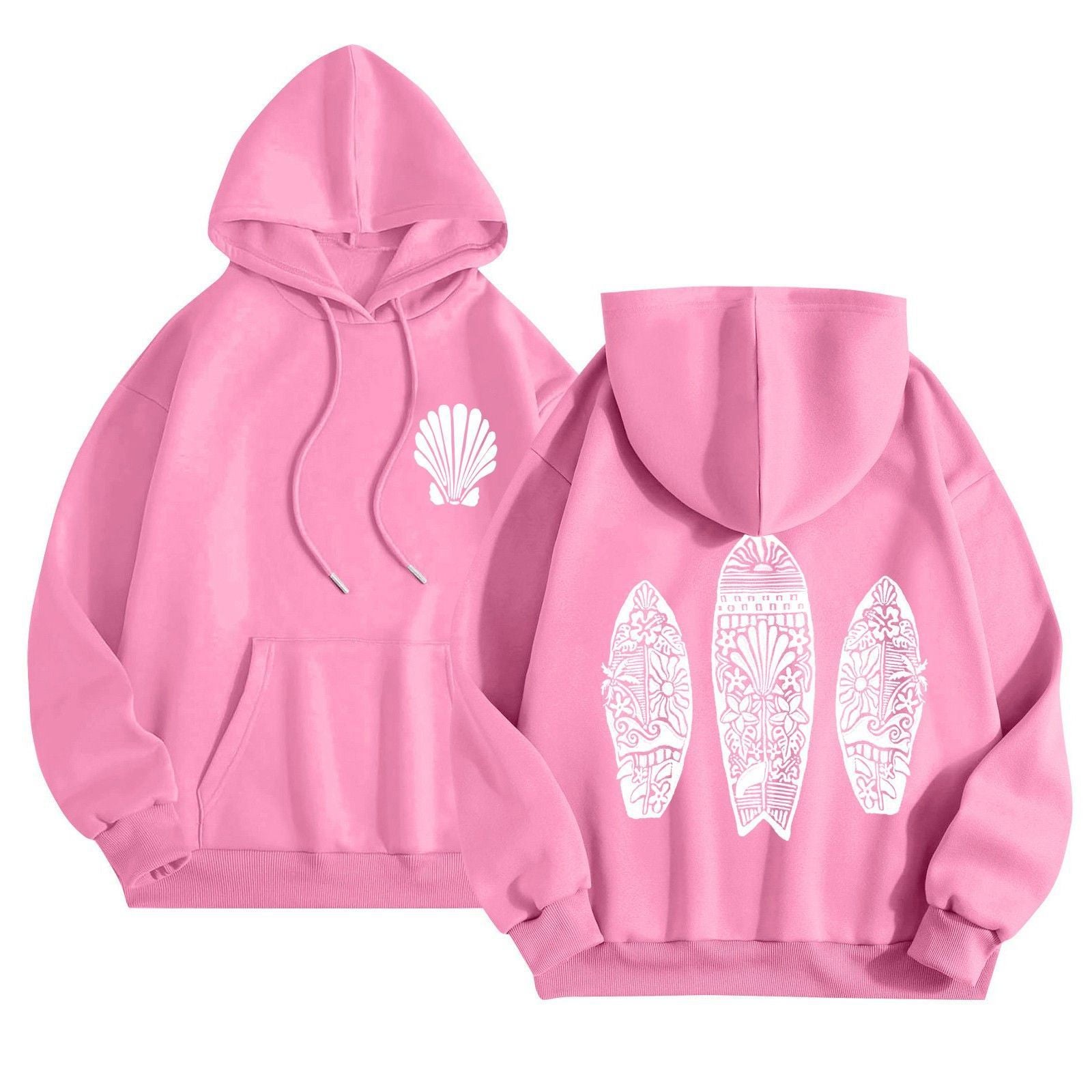 Simple Floral Letter Printing Drop-shoulder Sleeve Ladies Hoodie